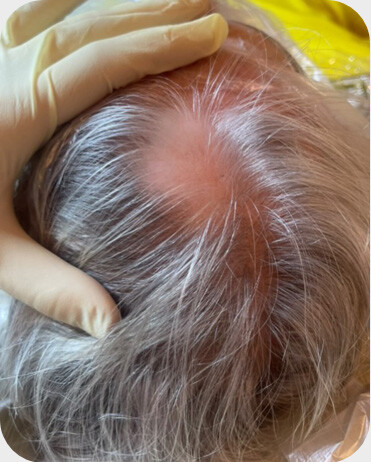 Инъекционное введение полученной плазмы в проблемные зоны кожи головы